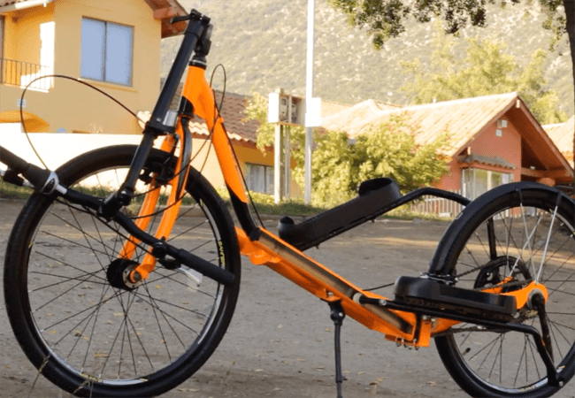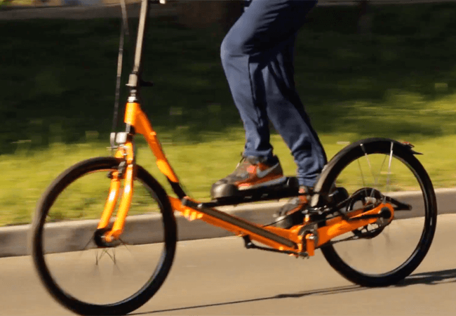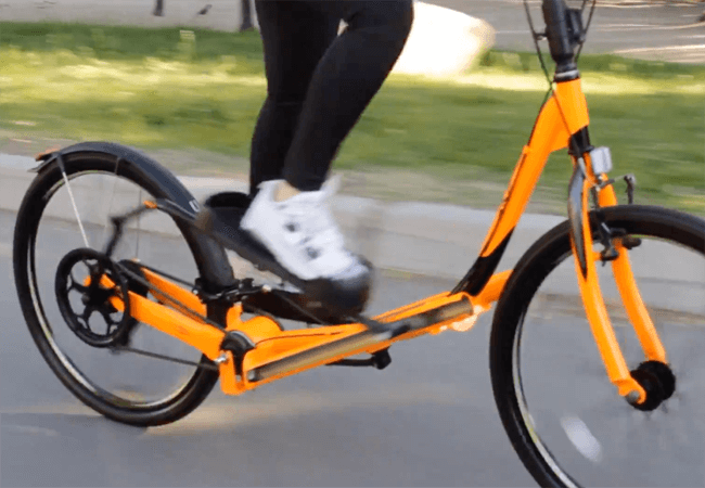 Esta bicicleta elíptica te permite moverte por la ciudad cómodamente realizando ejercicio físico mediante el movimiento elíptico de las piernas.