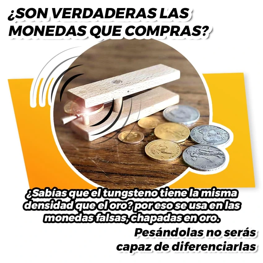 Con el SONIDO de la moneda: Gracias a nuestro Probador de Oro podrás saber si las Monedas de Oro o Monedas de Plata son Verdaderas.