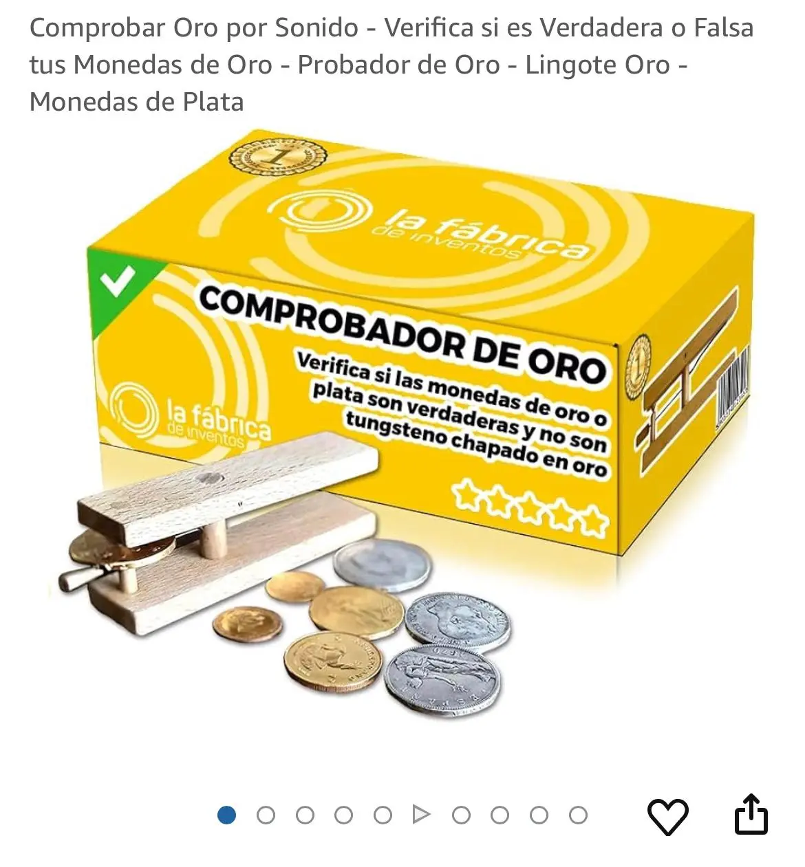 Este producto, creado por uno de nuestros inventores, permite detectar si una moneda es maciza de oro, o en su interior esconde otro material distinto al oro. Gracias al comprobador detectarás las monedas falsas.