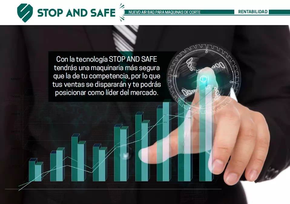 Con la tecnología STOP AND SAFE tendrás una maquinaria más segura que la de tu competencia, por lo que tus ventas se dispararán y te podrás posicionar como líder del mercado. Serás el fabricante que más interés genere a las empresas preocupadas por la prevención de riesgos laborales.