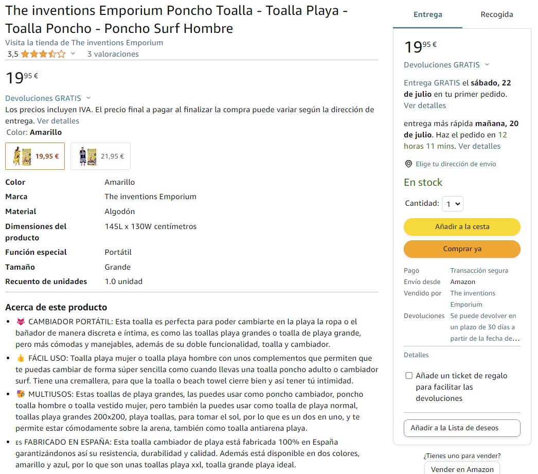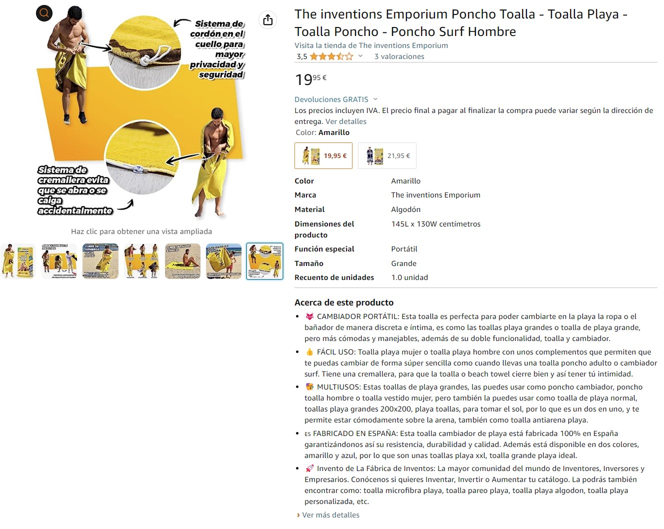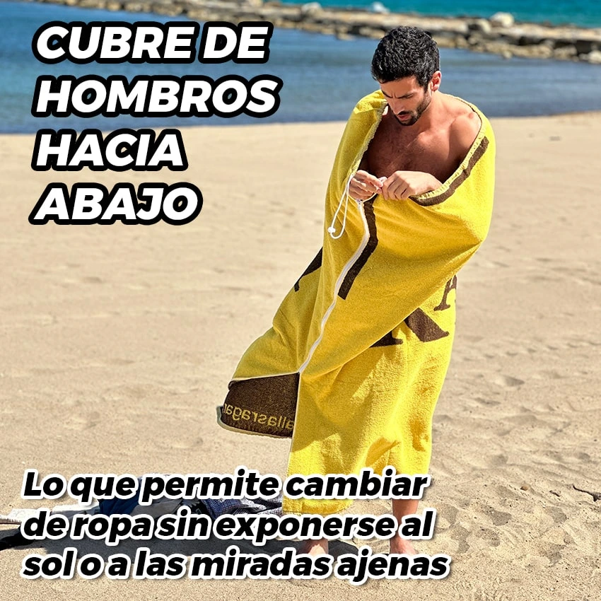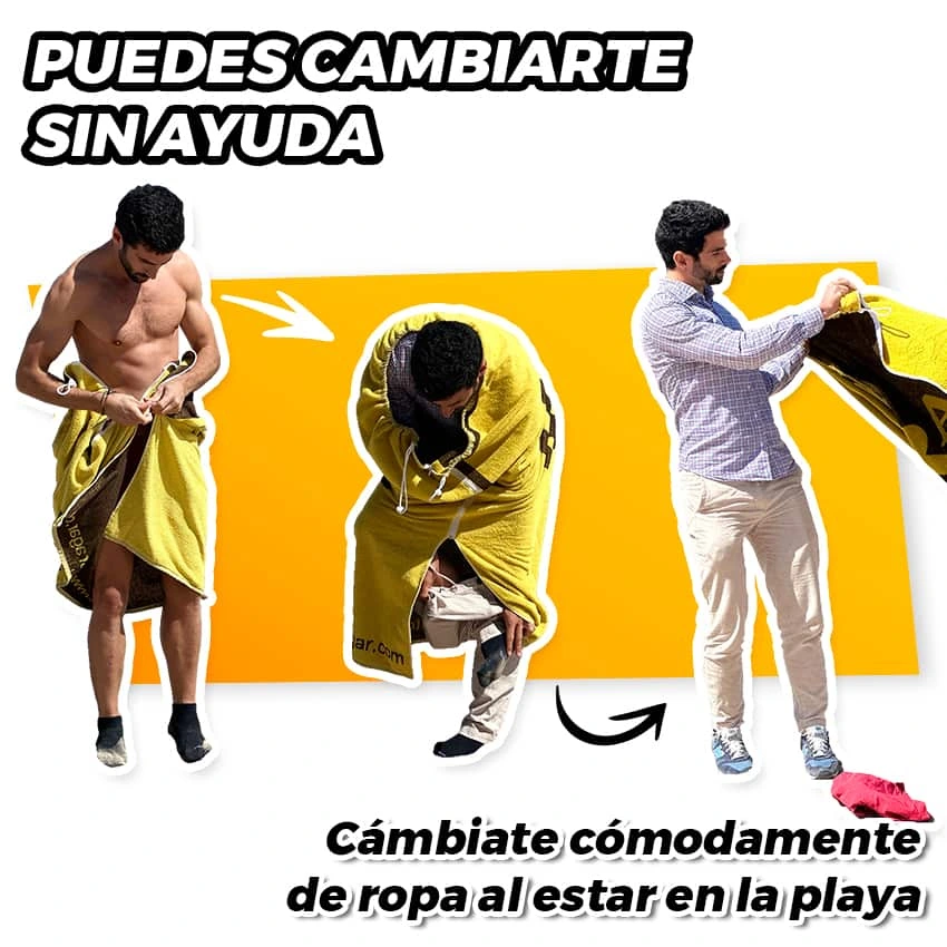 Esta toalla es perfecta para poder cambiarte en la playa la ropa o el bañador de manera discreta e íntima, es como las toallas playa grandes, pero más cómodas y manejables, además de su doble funcionalidad, toalla y cambiador. Se trata de un invento de José, Inventor de La Fábrica de inventos que empezó con una idea y ya tiene su producto con éxito en el mercado y en Amazon ¡Enhorabuena!